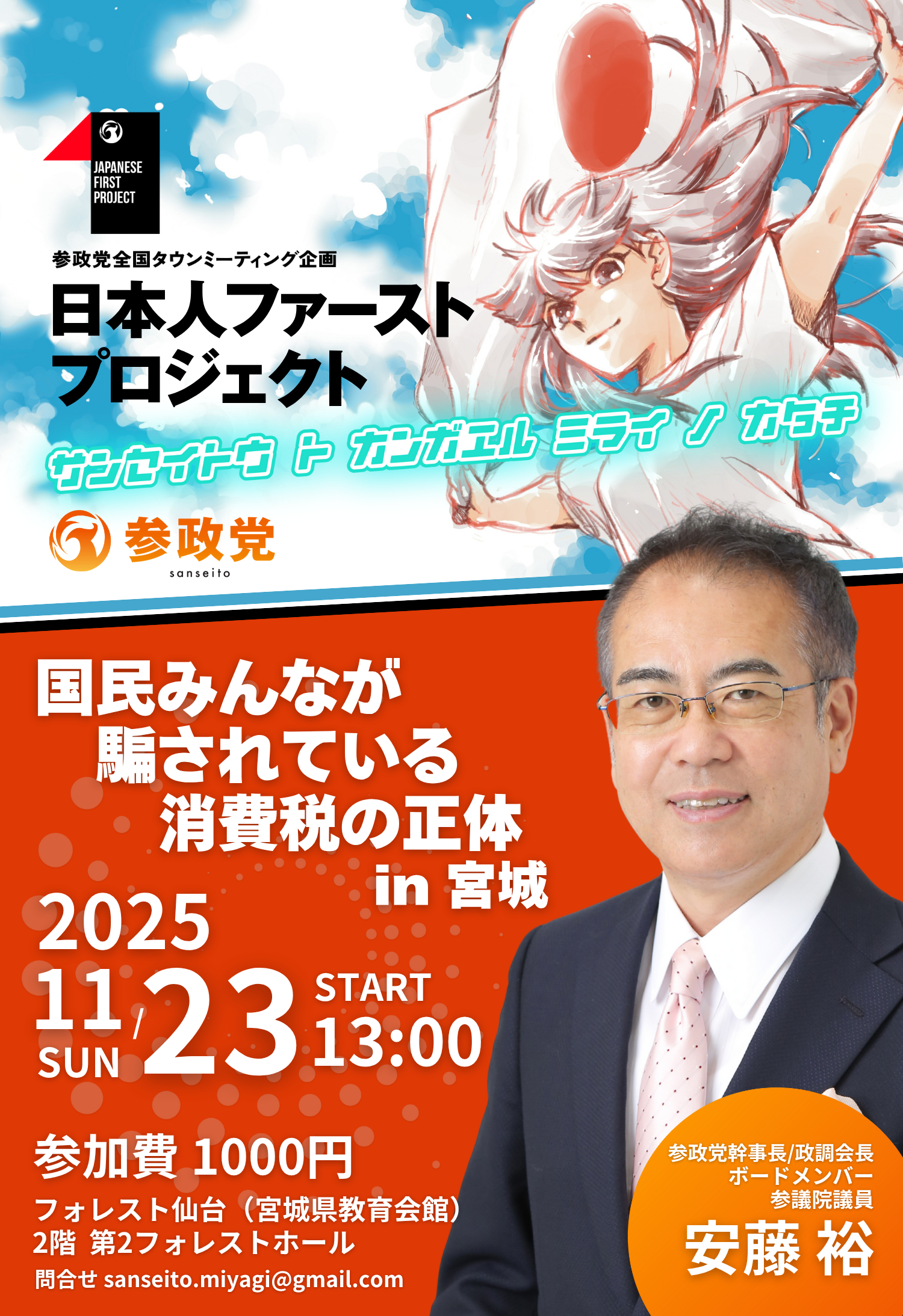 | イベント名 | 国民みんなが騙されている消費税の正体~消費税があるから賃金が上がらない~ |
